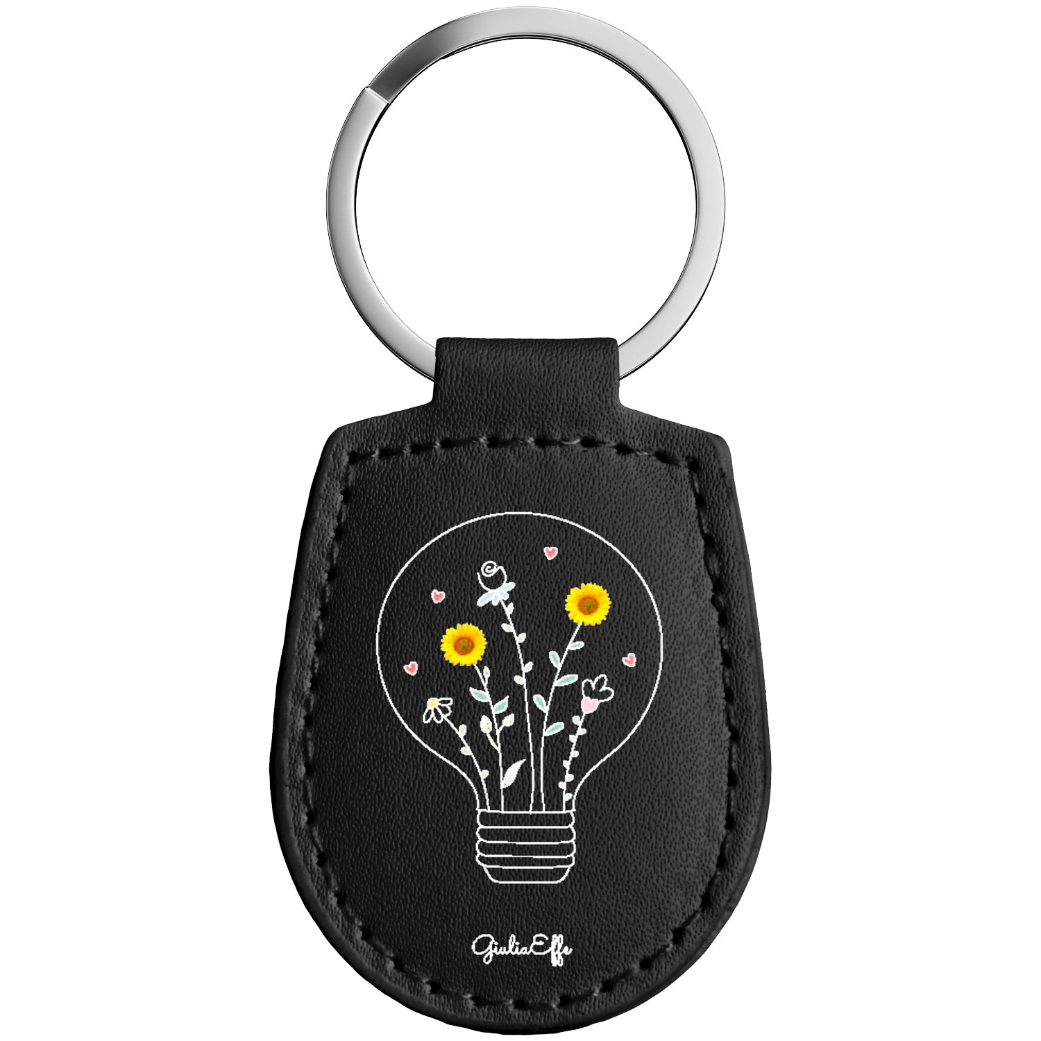 Portachiavi in pelle Lampadina dell'album Creatività su portachiavi di GiuliaEffe con anello in metallo, Disponibili in 6 Colori, Stampa di Alta Qualità